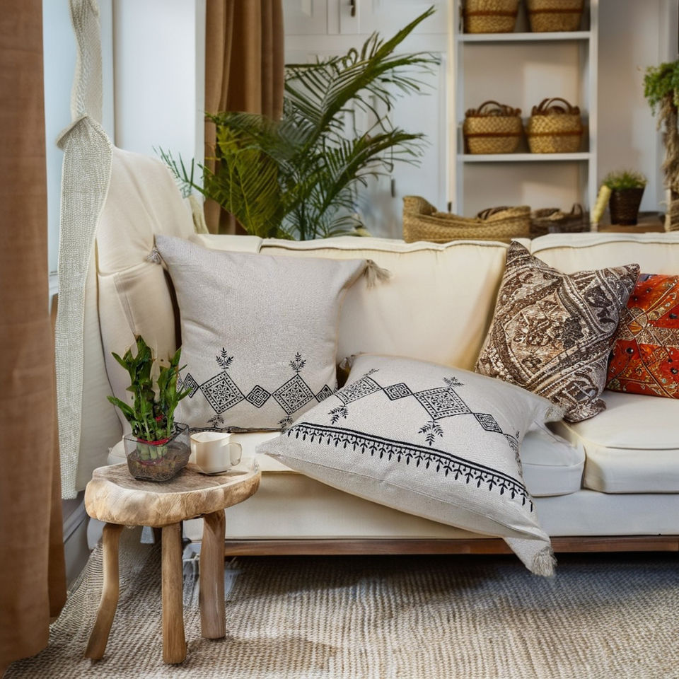 Funda de Cojín Tejida a Mano STUDIO N, Ecológica, Recubierta de PVC, 100% Algodón Tejido a Mano, Peso Medio, 120 GSM, Secado Rápido