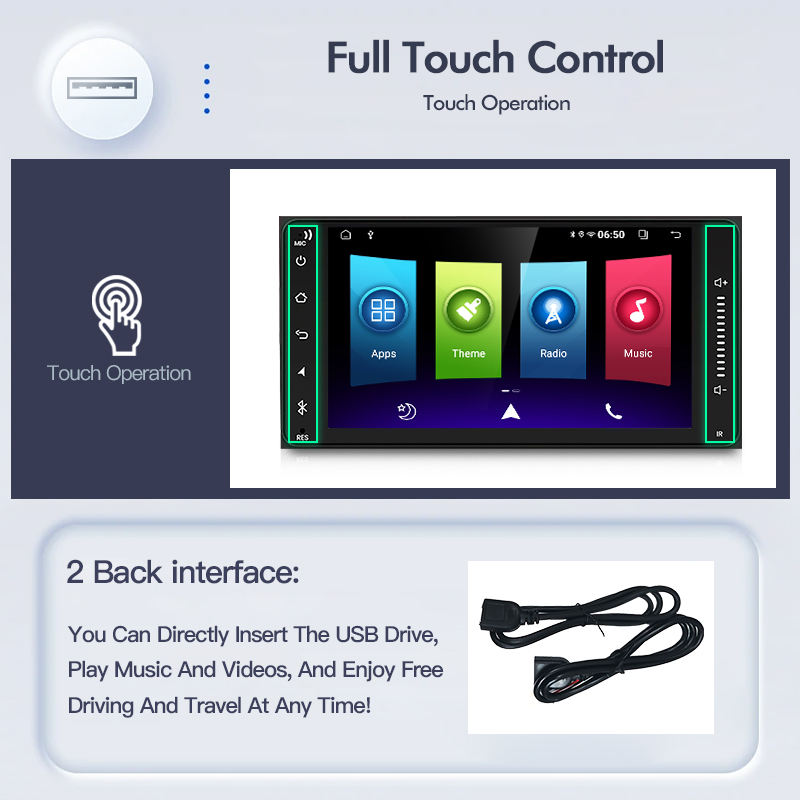 Función:Enlace espejo, Android auto, De carga rápida, Control del Volante, DSP, CarPlay, Luces coloridas