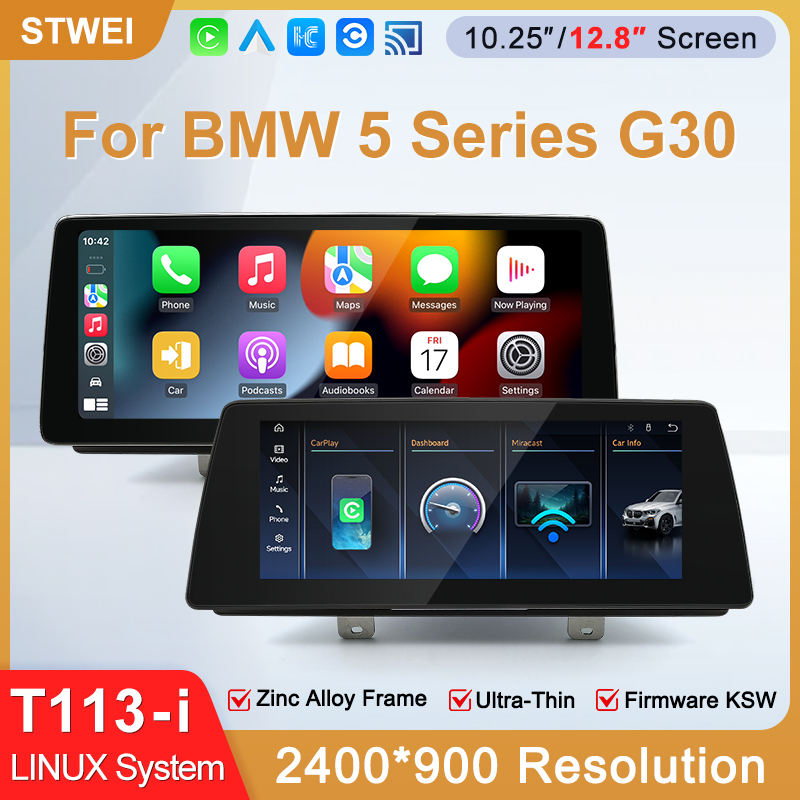 STWEI 2026 Nuevo Sistema Linux Delgado de 12.8 Pulgadas con Resolución 2400X900 para BMW Serie 5 G30, Reproductor Automotriz Inalámbrico CarPlay KSW