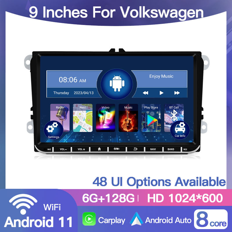 Radio de Coche Android STWEI de 9 Pulgadas y 2 Din con GPS para VW / Volkswagen Skoda Octavia Golf 5 6 Touran Passat B6 Polo Jetta Reproductor de Video BT