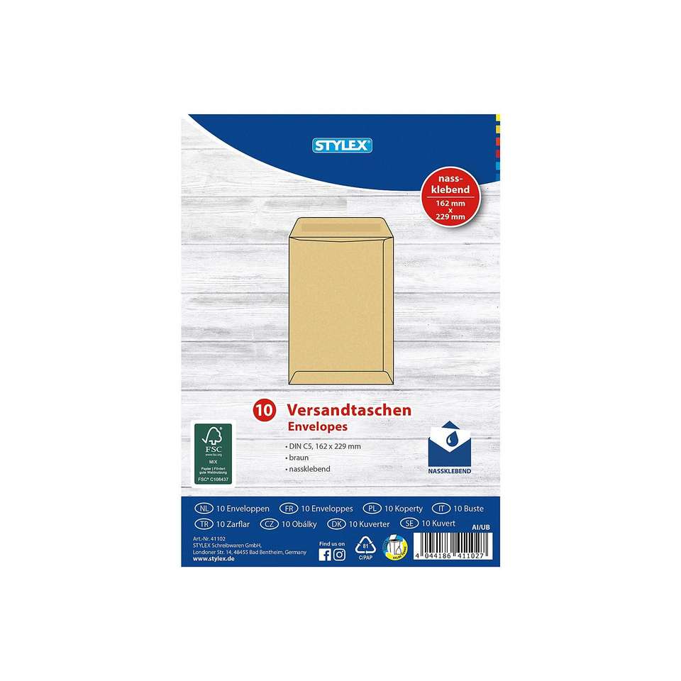 Bolsas de correo STYLEX DIN C5 adhesivo húmedo marrón 10 piezas