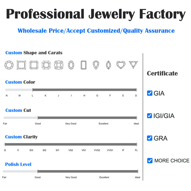 Piedra principal:Moissanite/diamante crecido laboratorio-CVD/diamante natural