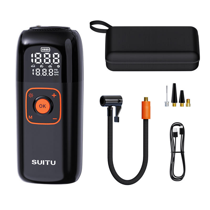 Inflador de neumáticos portátil SUITU de 80W con pantalla LCD, bomba de aire eléctrica de 11.1V para coche, motocicleta y bicicleta