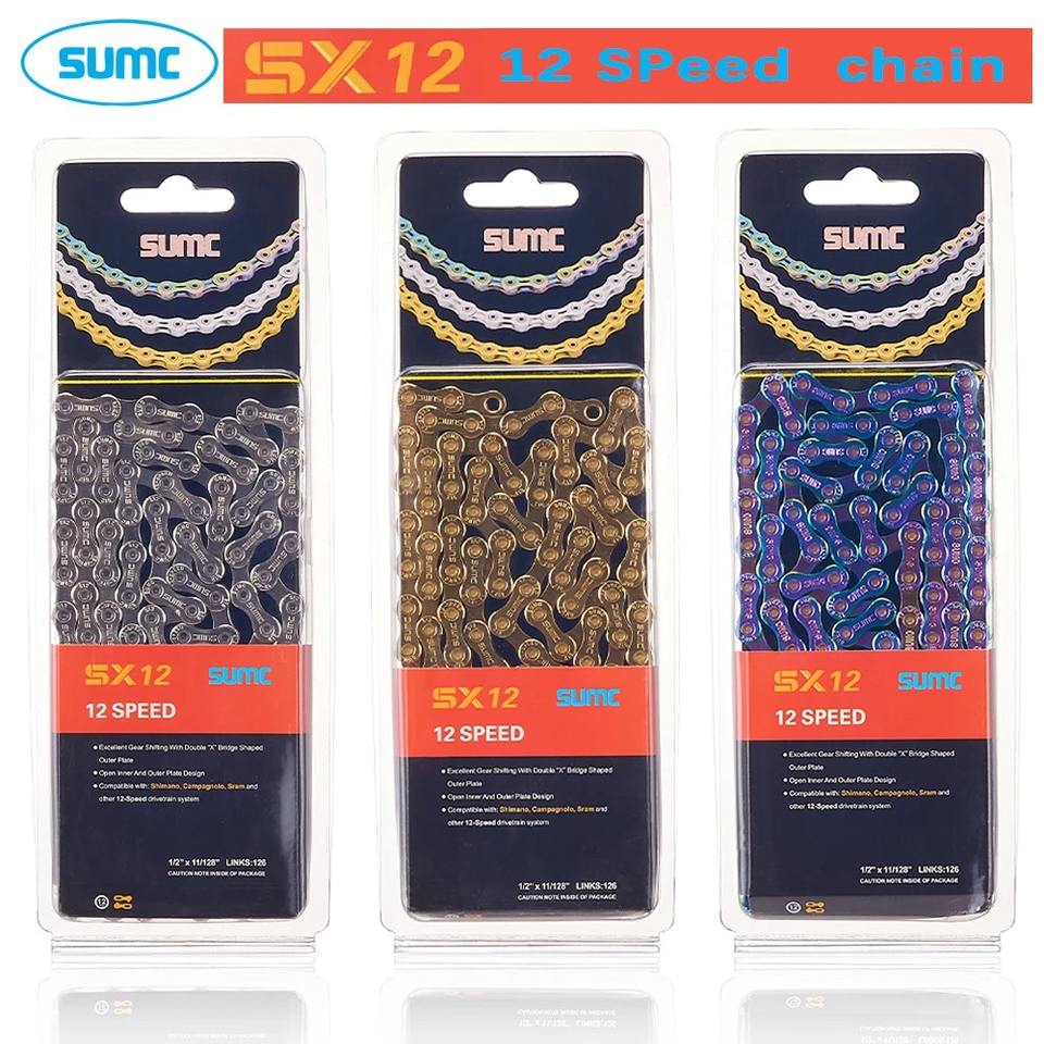 Cadena de 12 velocidades SUMC MTB bicicleta de carretera Cadena de diamante serie 126L ultraligero SX12SL Color bicicleta de montaña 12V cadenas para Shimano Sram