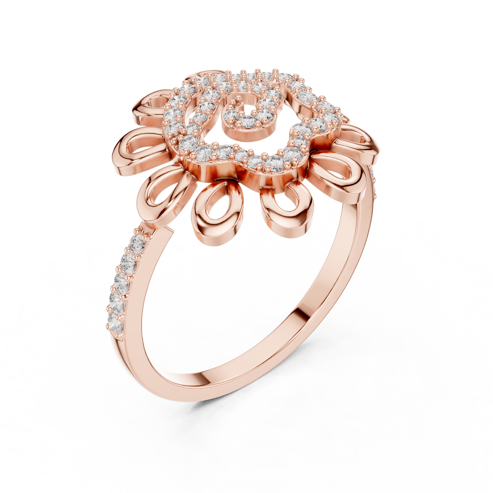 Anillo de Diamantes Redondos Cultivados en Laboratorio SUNBURST FLORAL, Chapado en Rodio, para Mujer, Juego de Anillos de Oro Amarillo de 18 Quilates, para Compromiso, Fiesta, Boda, Evento Glamuroso