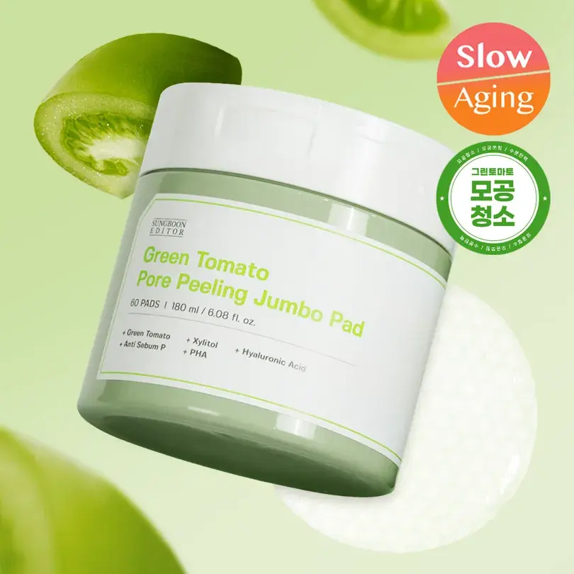 SUNGBOON EDITOR Green Tomate Pore Peeling Jumbo Pad 60PGod Producto de lavado de cara de calidad