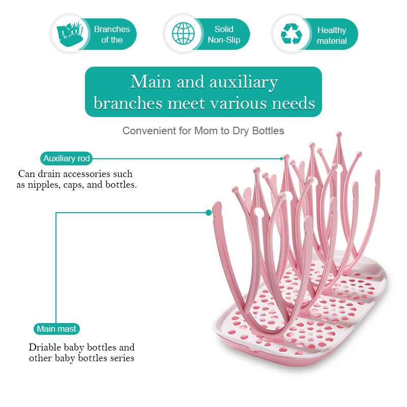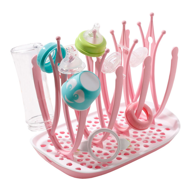 SUNNUO 2023, estante de secado de biberones, estante de secado de encimera de Año Nuevo con bandeja de agua extraíble, patrón de dibujos animados para 0-12 meses