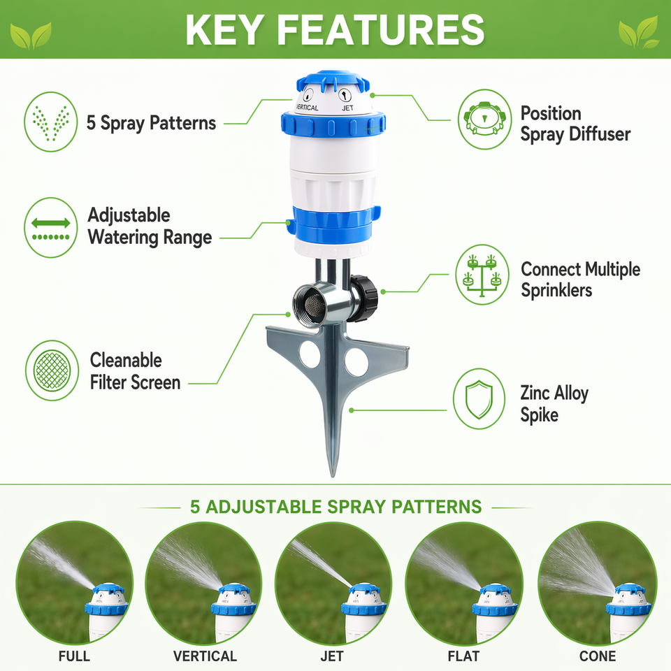 Product Name:Five Gear Drive Sprinkler with Metal Spike Base