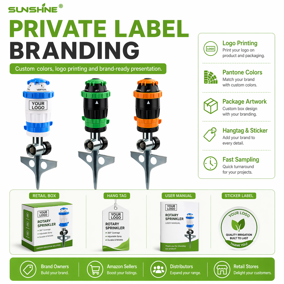 Aspersores de Jardín de Plástico SUNSHINE, Sistema de Riego Automático con Rotación, Mantenimiento para Césped y Agricultura, Contratistas de Riego