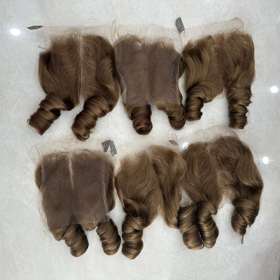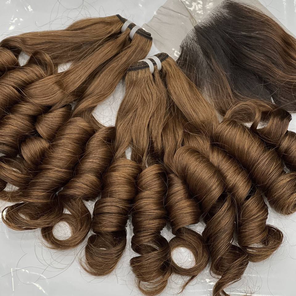 SUPER DOBLE FUNMI BOUNCY RIZOS MIEL MARRÓN TONOS CUTÍCULA ALINEADO CRUDO DONANTE VIETNAMÉS EXTENSIONES DE TEJIDOS DE CABELLO VIRGEN