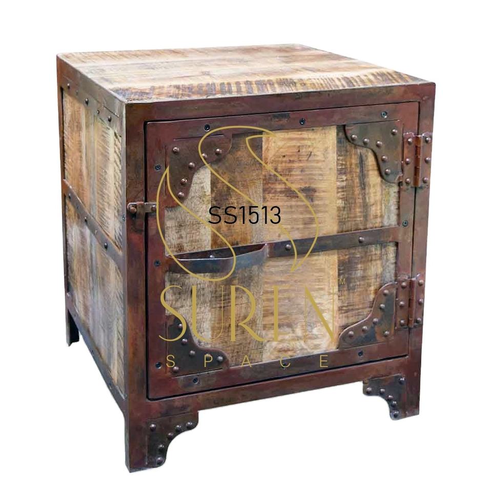 SUREN SPACE SS1513 Mesa de Noche Moderna Jodhpur con Acabado Rústico de Mango Indio Aara