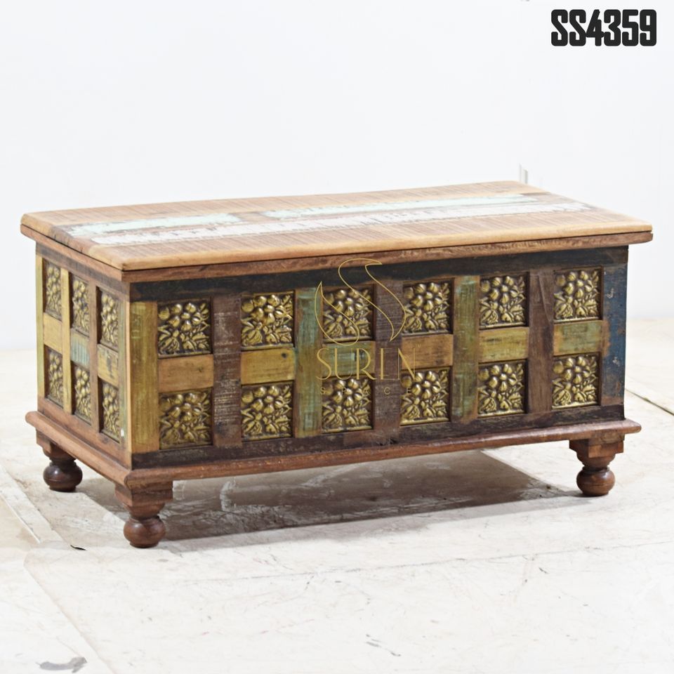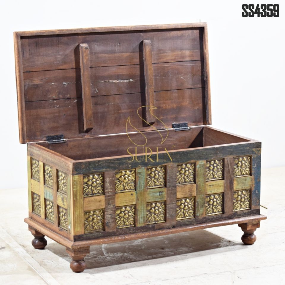 SUREN SPACE Baúl de Almacenamiento de Madera Maciza de Último Diseño Único, Muebles de Sala de Estar de Diseño Indio para el Hogar, Hoteles, Recibidor, Rajasthan