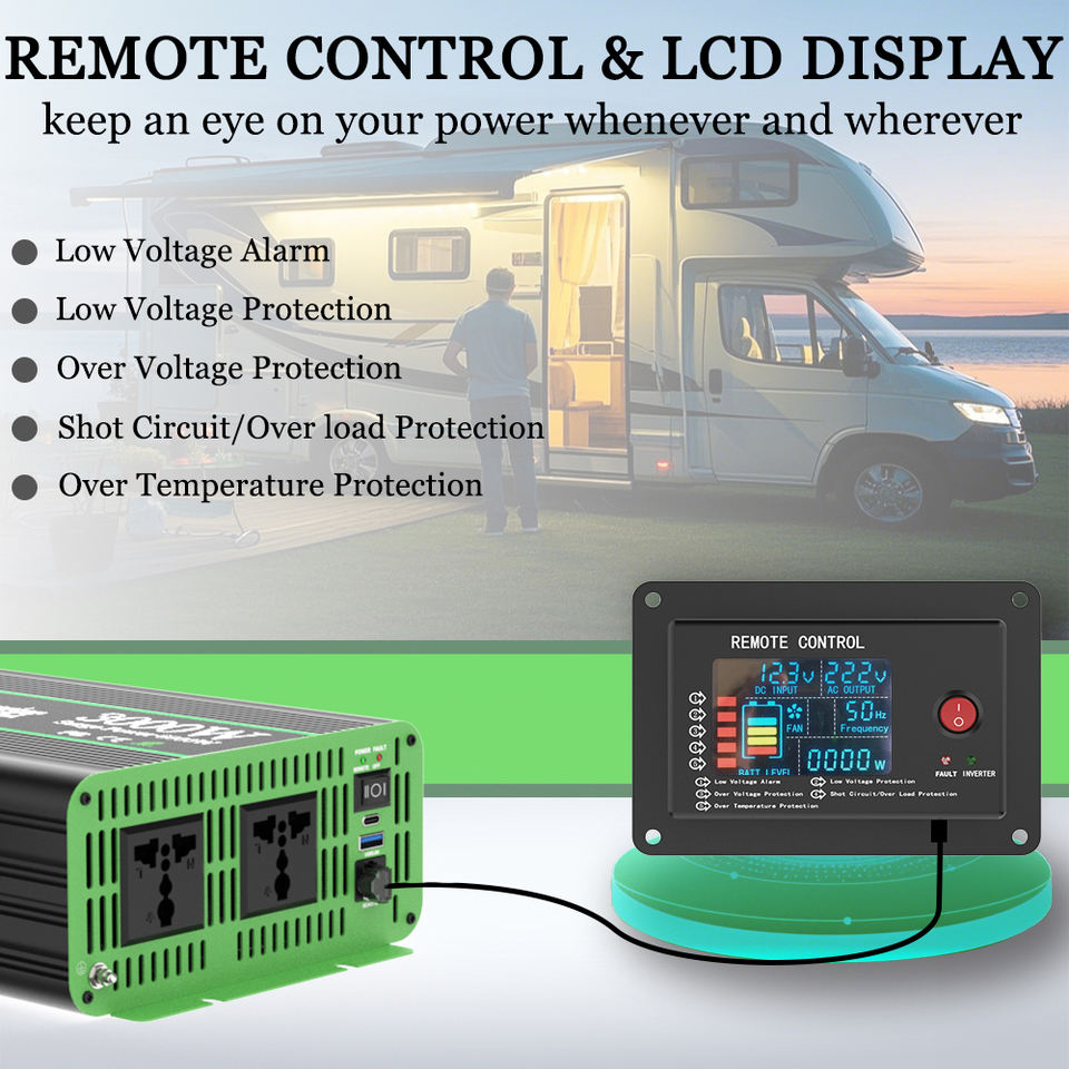 SUYEEGO Inversor Rv 12V 24V a 220V Inversor de onda sinusoidal pura fuera de la red 1000W DC a AC Inversor solar de energía