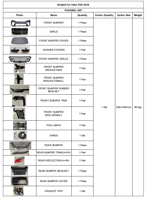 Nombre del producto:Kit de carrocería estilo SVA compatible con Range Rover Velar 2017-2021