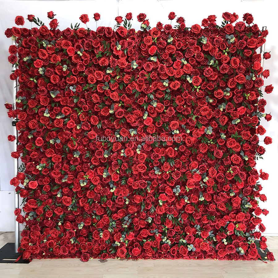 Panel Decorativo de Pared con Flores Artificiales de Primera Calidad para Bodas y Eventos, Rollo de 4 pies x 8 pies, Color Rojo