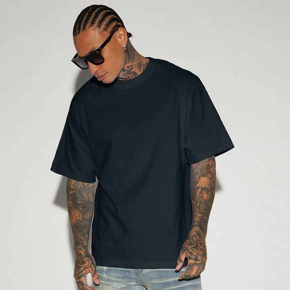 SWIFT FUSION-Camiseta personalizada de algodón pesado 100% para hombre, ropa de calle de corte regular con hombros caídos y cuello redondo, estampado Digital 'Heavy Box'