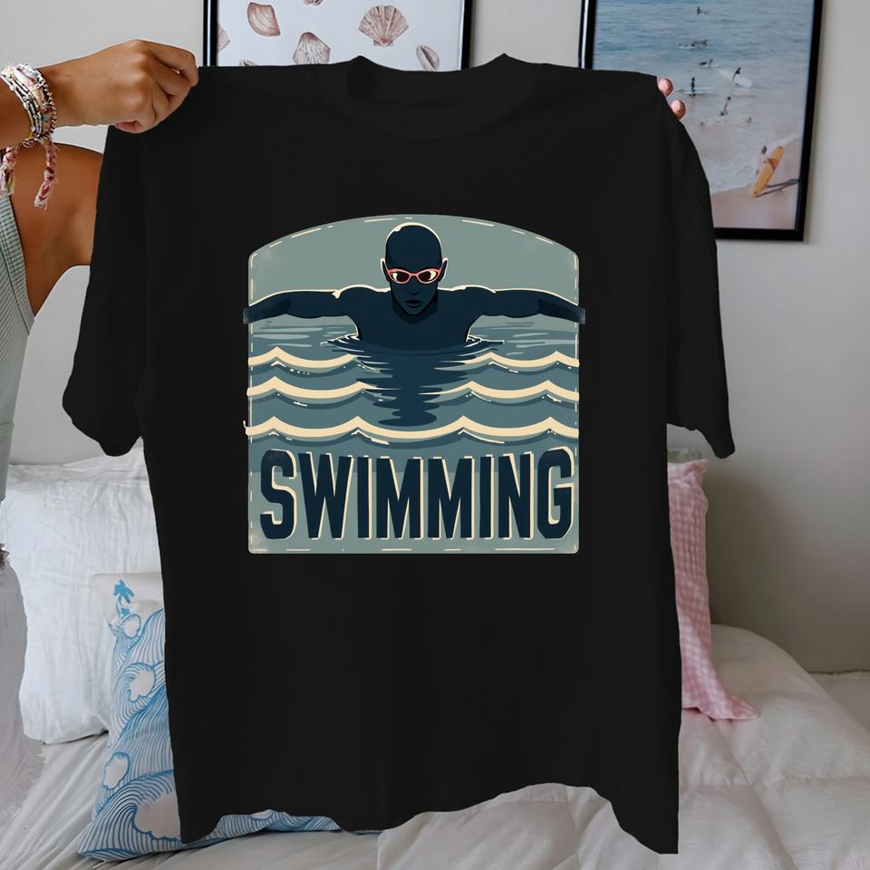 Silueta de natación con ondas, Camiseta de algodón puro para mujer, ajuste cómodo
