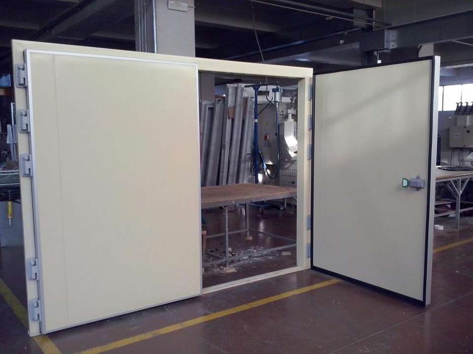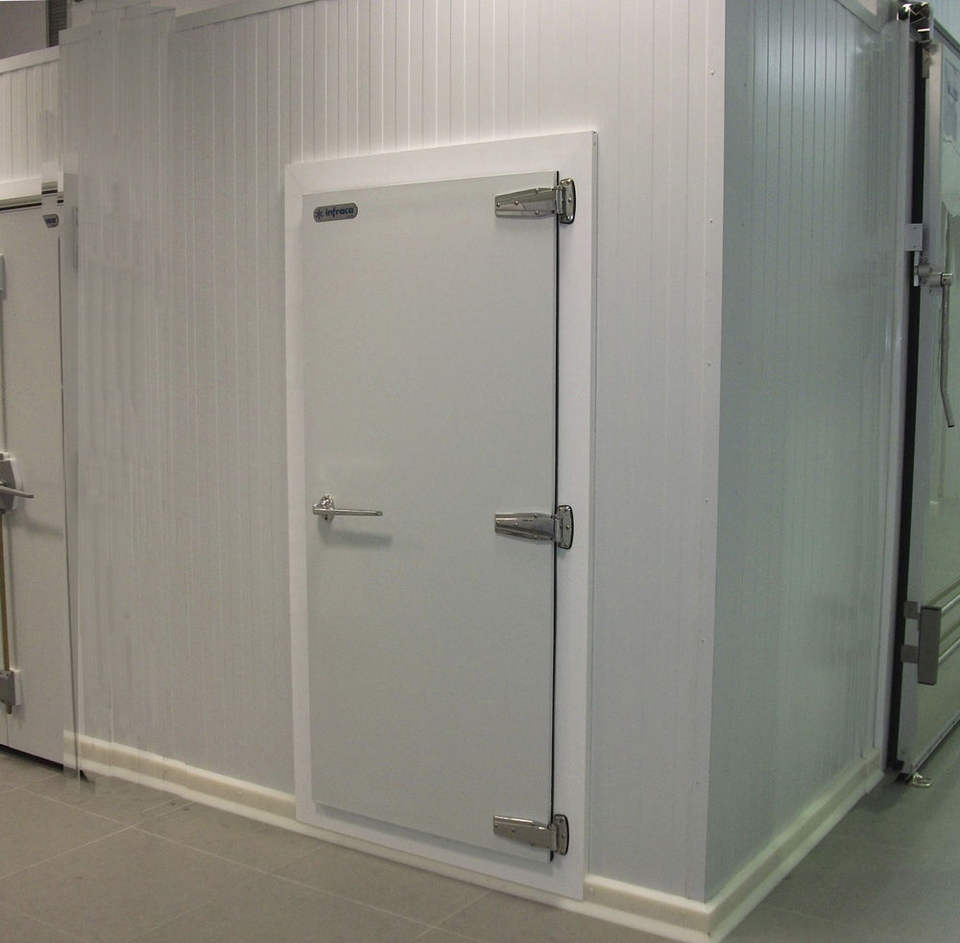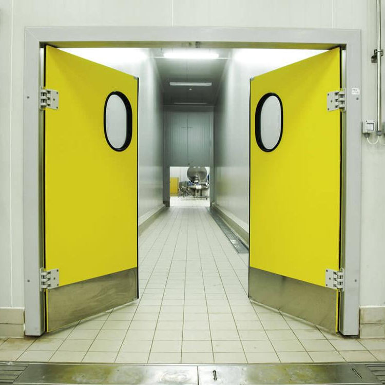 Puerta de Cámara Frigorífica de Doble Hoja Tipo Batiente con Aislamiento Térmico, Diseño Moderno, Construcción de Plástico y Acero para Almacén