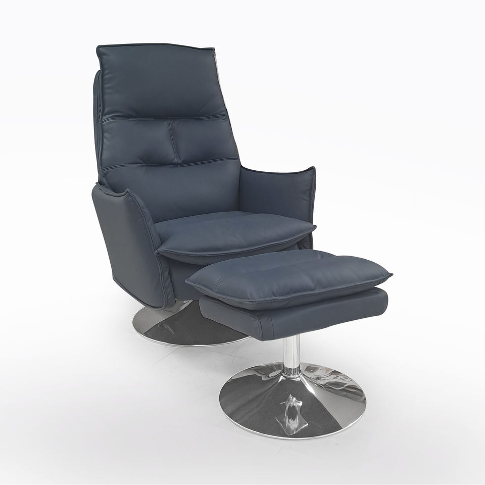 SILLA GIRATORIA DE RELAJACIÓN CON REPOSAPIÉS EN CUERO ECOLÓGICO AZUL