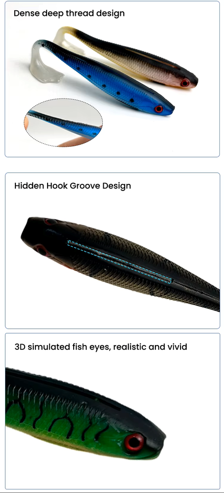 Señuelo blando de PVC impreso SWORDFISH con cola en T acanalada, cebo artificial para pesca de fondo de carpa y bagre en agua dulce