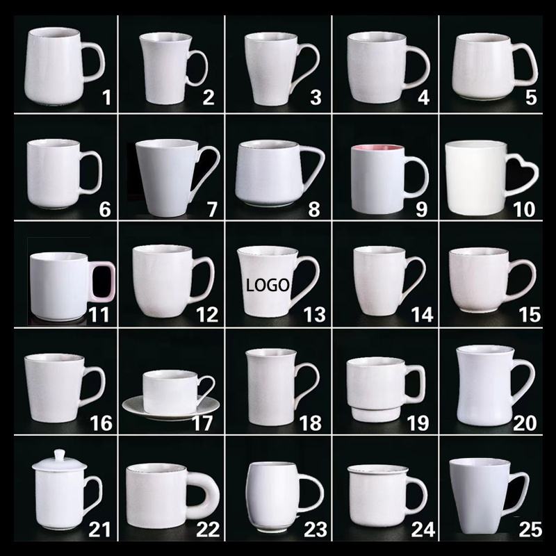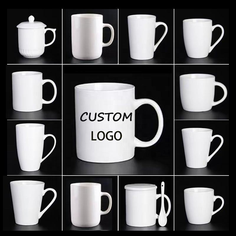 Taza de porcelana promocional de la marca SWT, taza de sublimación de agua, regalo, juego de tazas de café de cerámica en blanco y negro, logotipo impreso