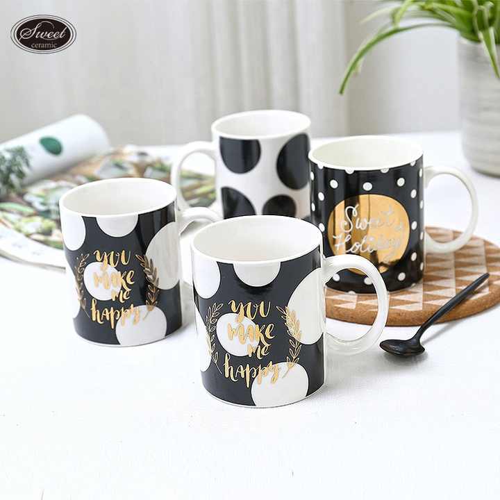 SWT Estilo nórdico Pretty Promoción Tazas Agua Cocina Calcomanía Logotipo dorado Color Tazas de café de cerámica personalizadas para regalo