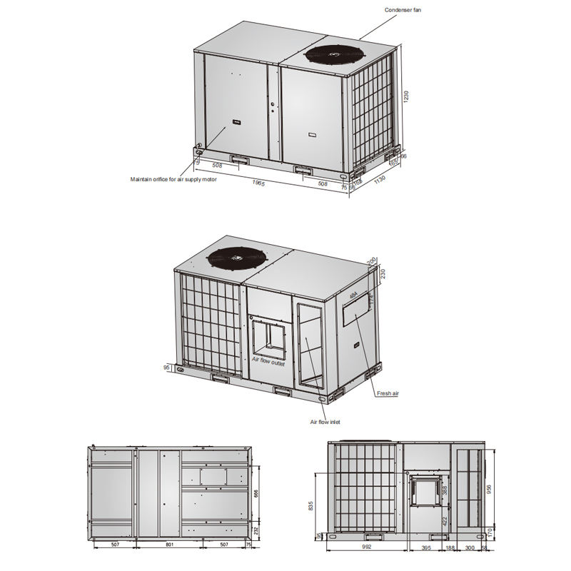 Unidad de paquete de aire acondicionado SYLON en la azotea sin unidad exterior Refrigeración solo tipo 6,2-30 toneladas Aire con conductos