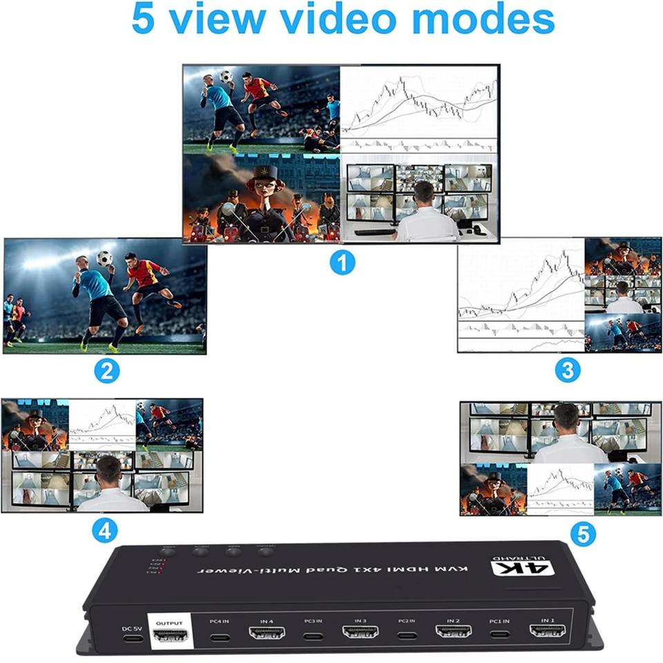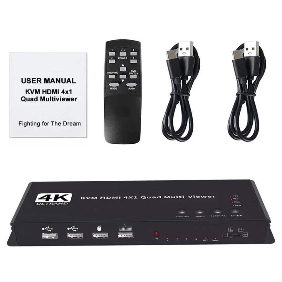 KVM HDMI 4 en 1, visualizador múltiple en tiempo real de pantalla cuádruple 4K