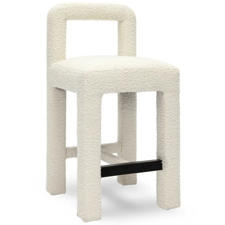 Taburete de Barra con Estructura de Madera Resistente y Estable, Diseño Moderno Sable Boucle, para Sala de Estar y Dormitorio