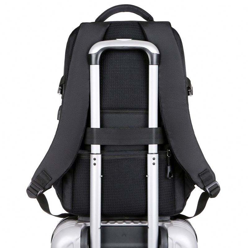 Mochila escolar negra para portátil de 14 pulgadas, impermeable y personalizable, ideal para estudiantes.