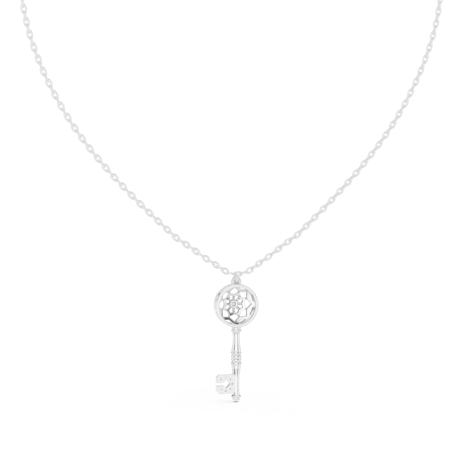 Colgante de Diamante Llave Sagrada, Chapado en Rodio, Estilo Vintage, Desbloquea tu Destino, Amuleto Espiritual, Collar con Colgantes y Amuletos Finos