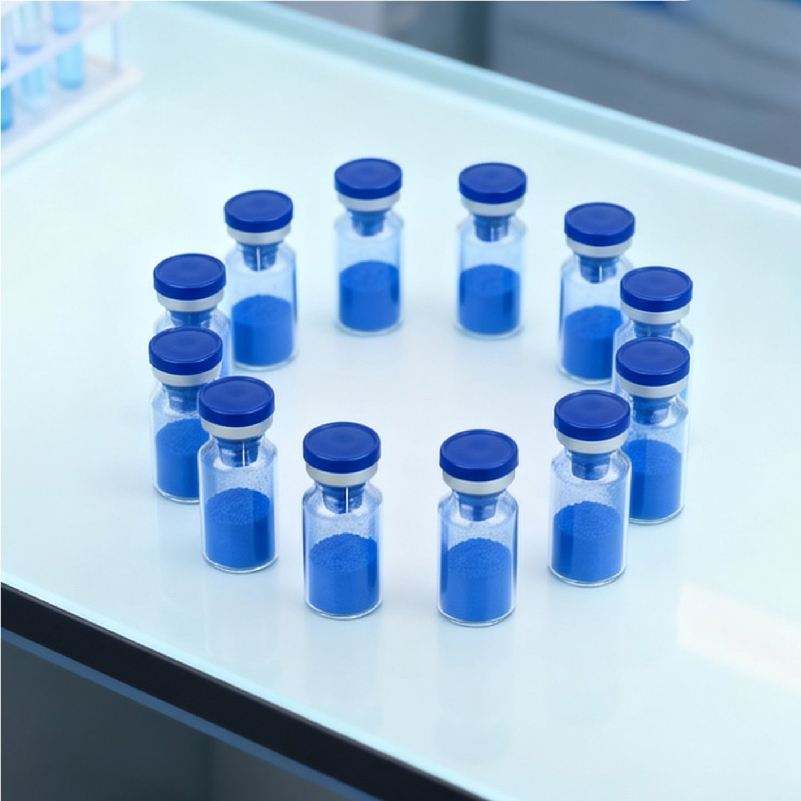 Polvo Compacto Seguro Estilo Péptido en Viales GHK Cu con Tapa Azul para Reafirmación Corporal, Materia Prima para Investigación, Envío Rápido EE. UU.