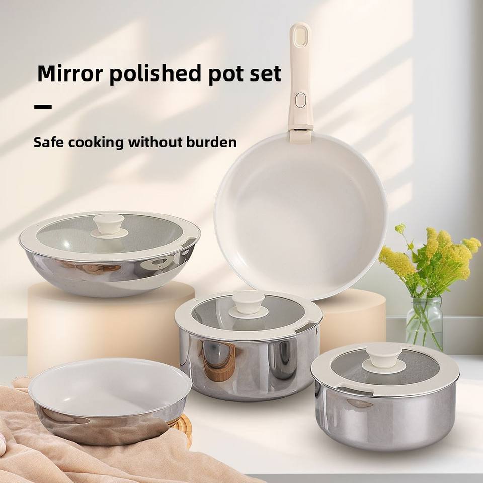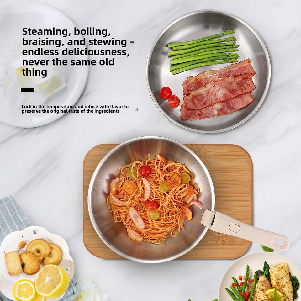 Juego de Utensilios de Cocina Antiadherentes Seguros y Saludables, Juego de Utensilios de Cocina de Acero Inoxidable sin Recubrimiento, Mango Extraíble, Uso Doméstico