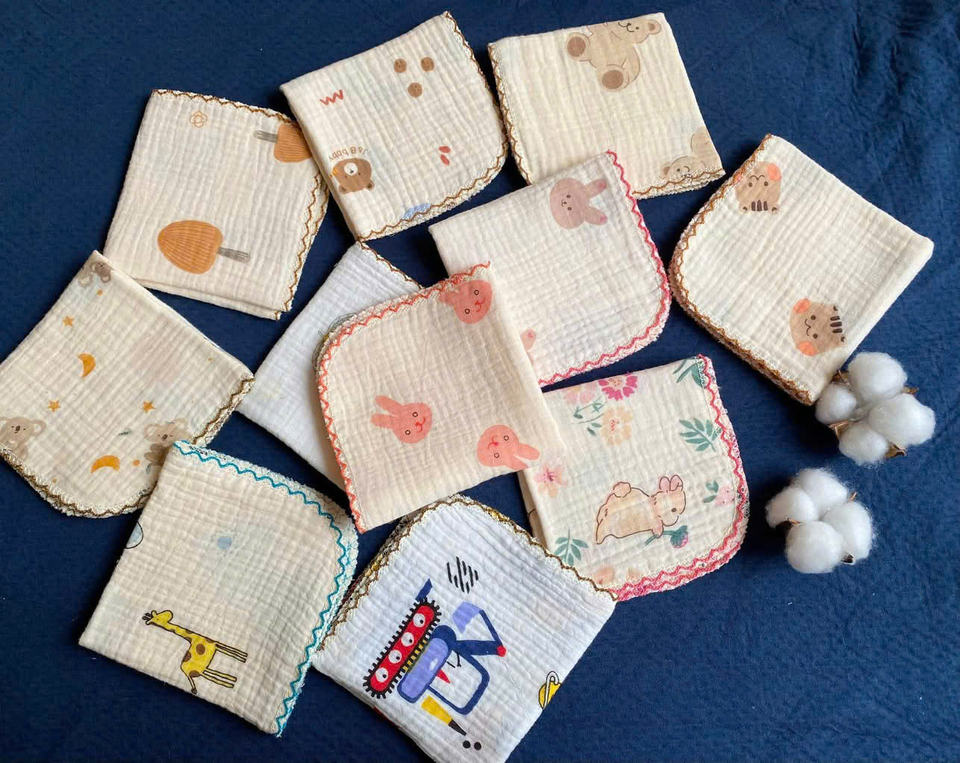 Paño de Muselina de Algodón para Bebés, Diseño Textil Seguro y Suave, para Recién Nacidos, 20x20cm, Cuadrado, Ultra Suave, Absorbente, Estampado