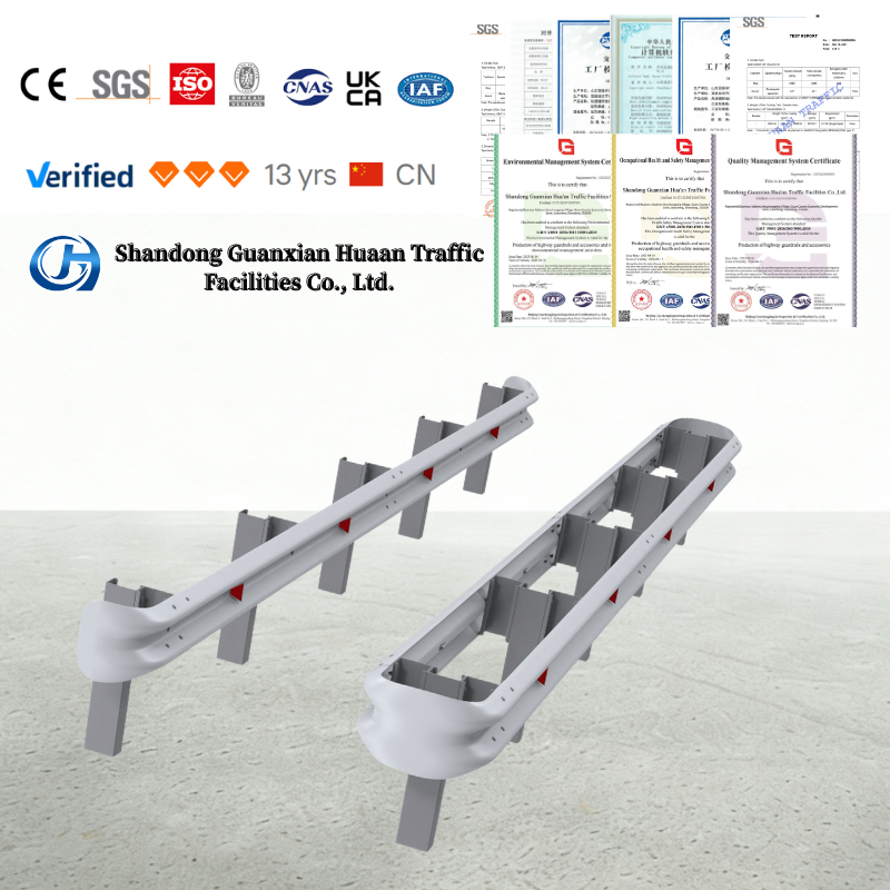 Barandilla de Seguridad para Carreteras con Certificación CE ISO, Tipo W, Material Q235/Q355, Superficie Galvanizada en Caliente, Prismática de Alta Intensidad