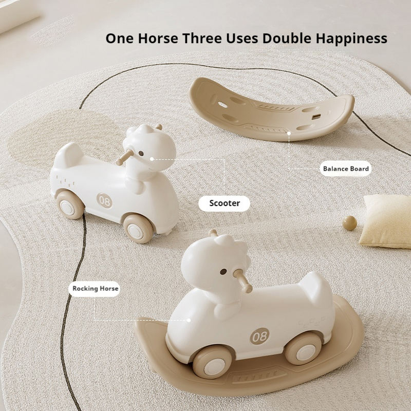 Caballo balancín de plástico neutro de género de seguridad, características anticaída, caballo balancín para caminar contemporáneo con ruedas para niños