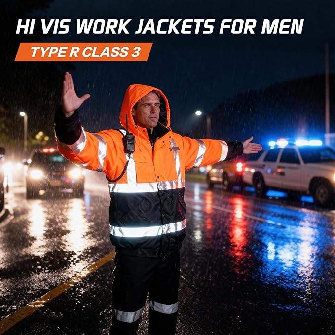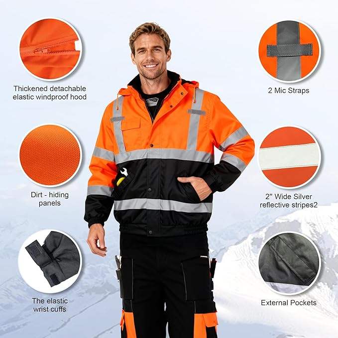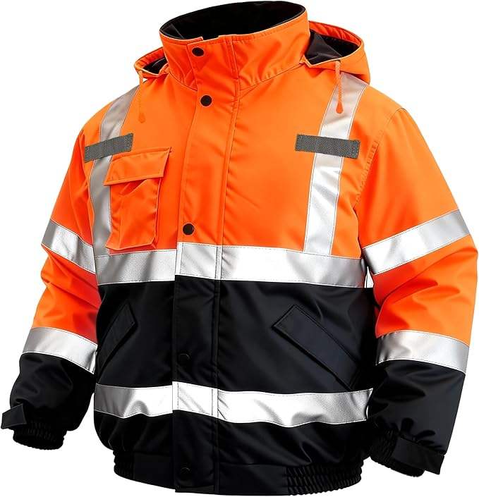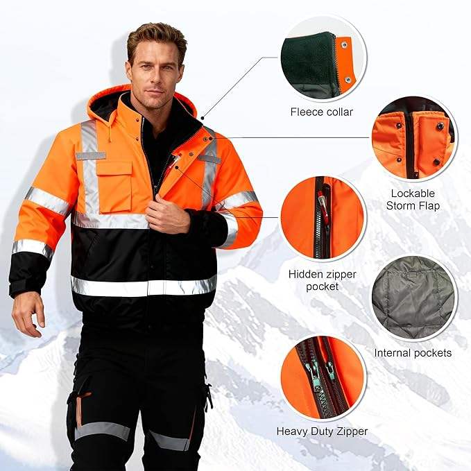 Chaqueta de seguridad para hombre, chaqueta bomber reflectante impermeable de alta visibilidad con bolsillos y cremallera