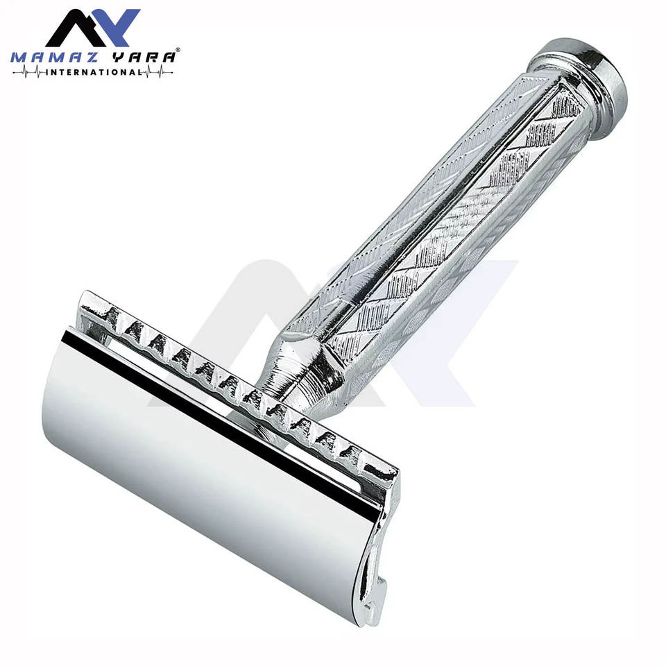 Maquinilla de Afeitar de Seguridad de Doble Filo, Cromada, de Acero Inoxidable, para Hombres y Mujeres, Marca Privada, para Afeitado en Húmedo