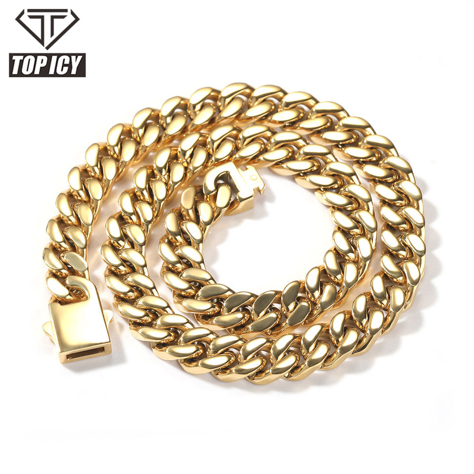 Safty-Cadena de eslabones cubanos de acero inoxidable, collar de eslabones cubanos de miami tradicional, chapado en oro de 18k