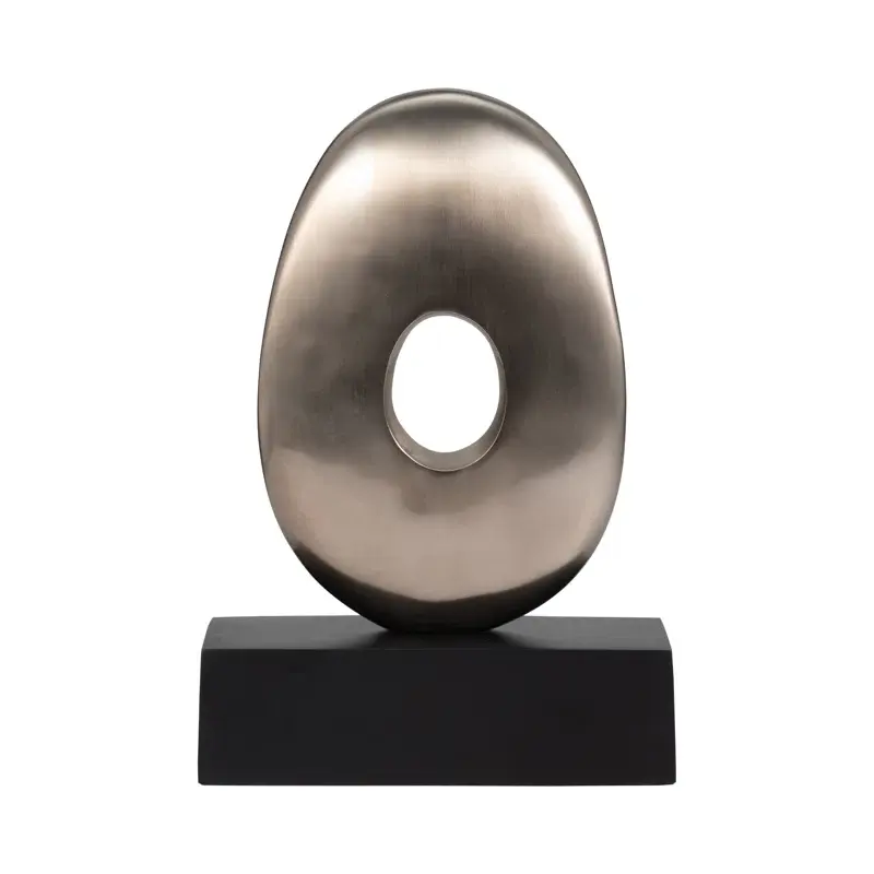 Sage Brook Home Escultura moderna de metal pulido en forma de óvalo Plata Negro Estilo antiguo Arte de pared decorativo forjado
