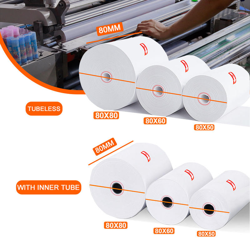 Vela 80*80 60 Gsm 58Mm X 40/50Mm 50Mm X 36Mm Caja registradora 8Mm 57Mm 13M 45G Rollo de papel térmico 80X75
