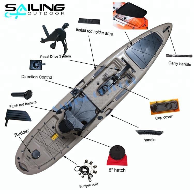 Nombre del producto:Barco de agua con pedales sentarse en la parte superior Kayak de pesca con pedales Drive