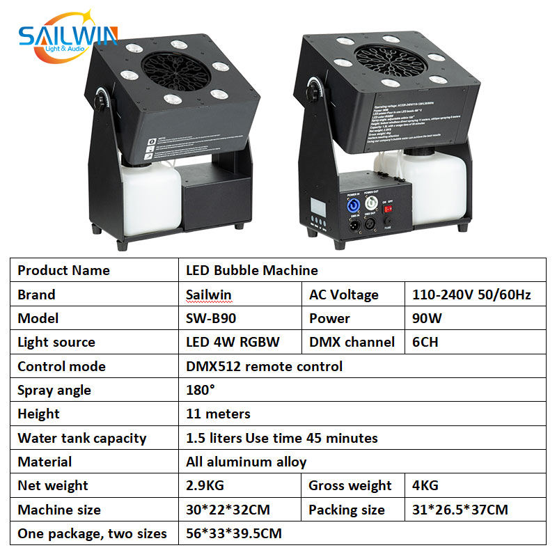 Máquina de Burbujas LED Sailwin, Efectos Especiales para Escenarios, Máquina de Burbujas LED con Cabezal Móvil de 180 Grados y 90W para Bodas y Fiestas