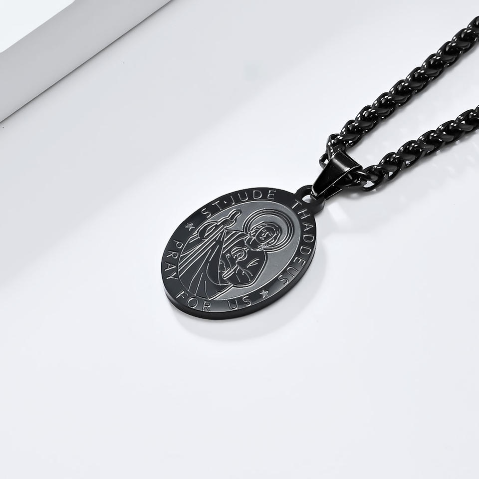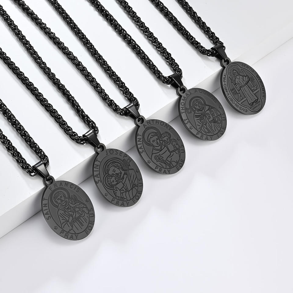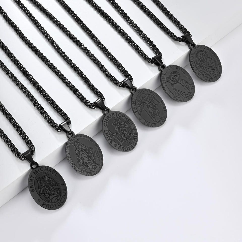 Collar de acero de titanio Saint Michael para hombre, colgante religioso negro, regalo, joyería, cadena de acero inoxidable de 24 pulgadas