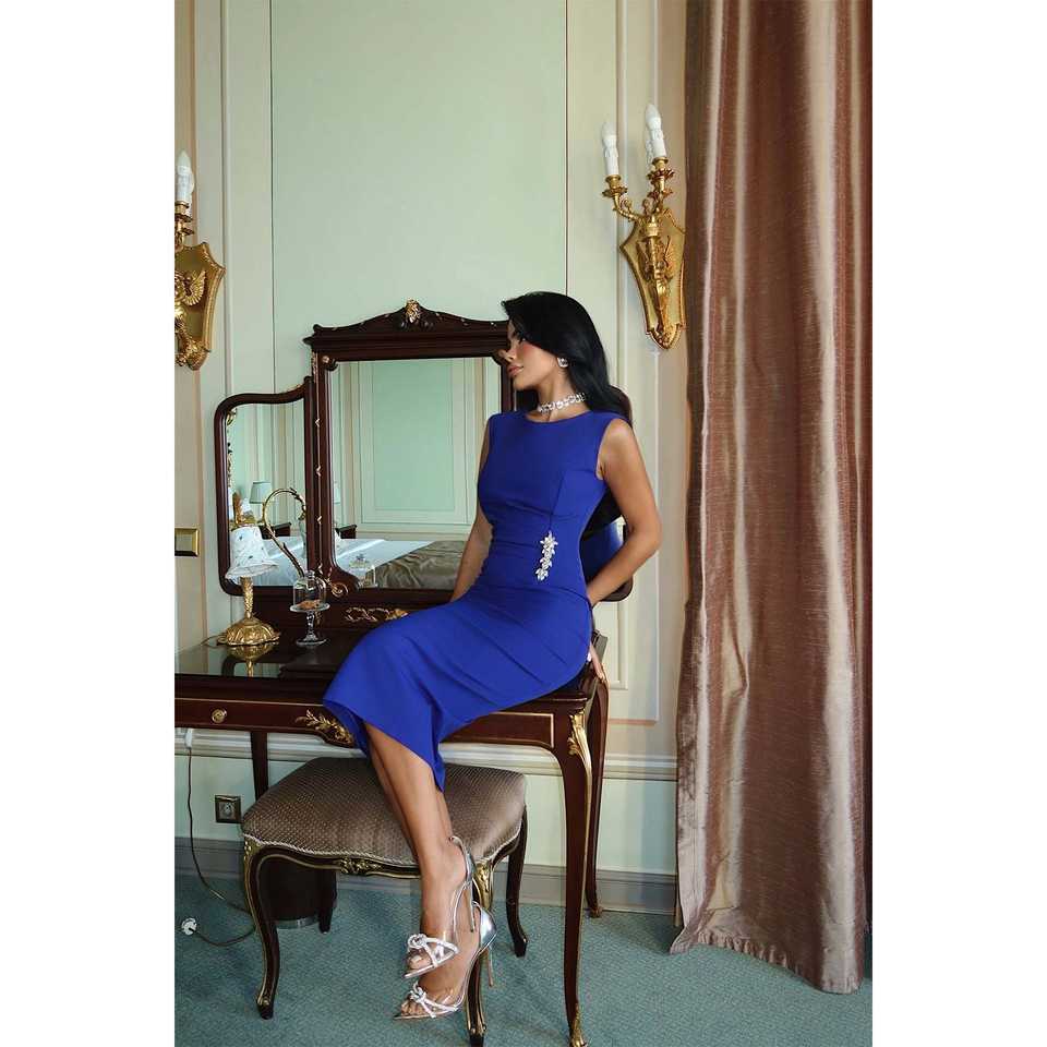 Vestido de noche acanalado con adornos de Saks