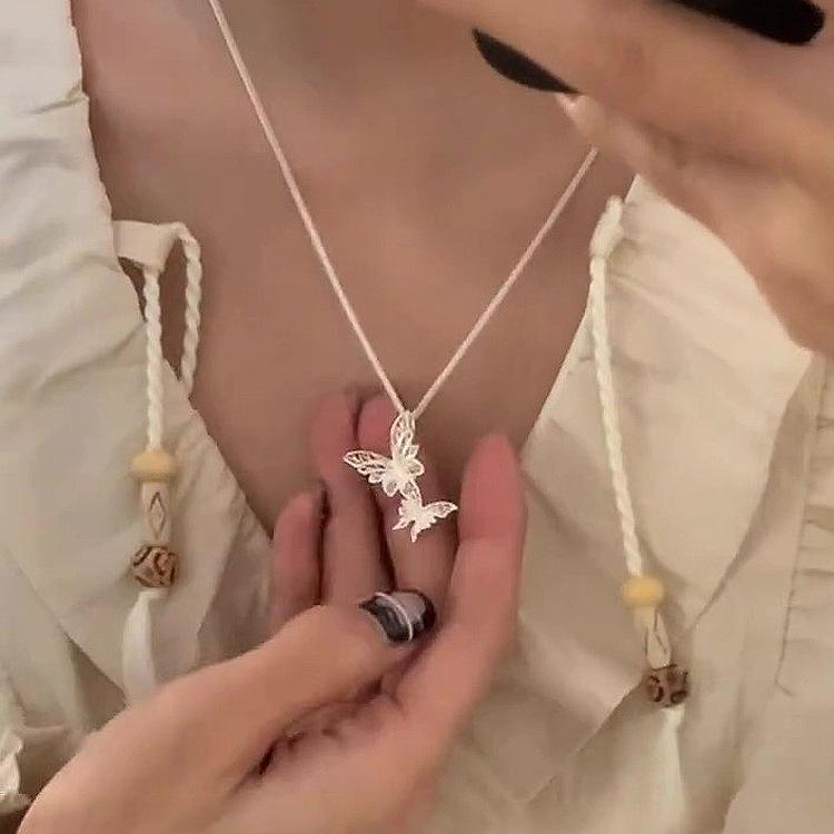 Collar de Mujer Sakura con Diseño Delicado y Lujoso, Plata de Ley S925, Cristal en Polvo, Flor de Melocotón Fresca, Estilo Moderno
