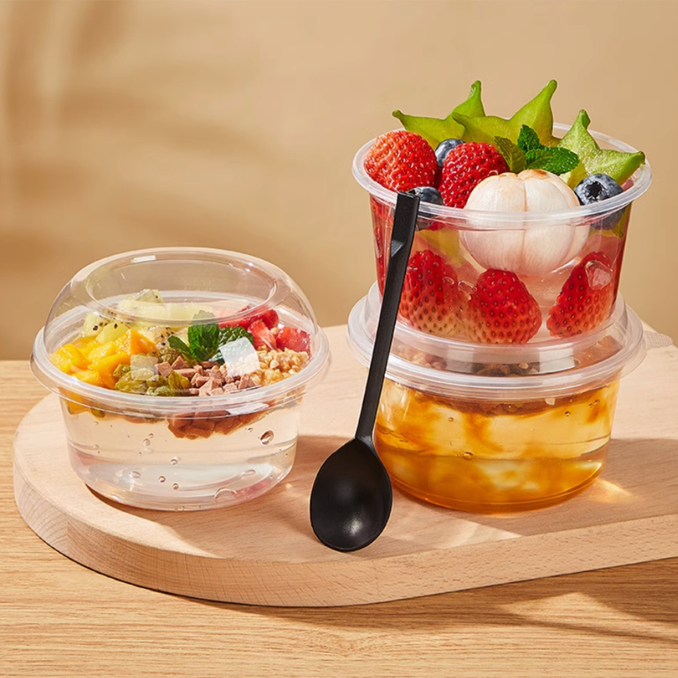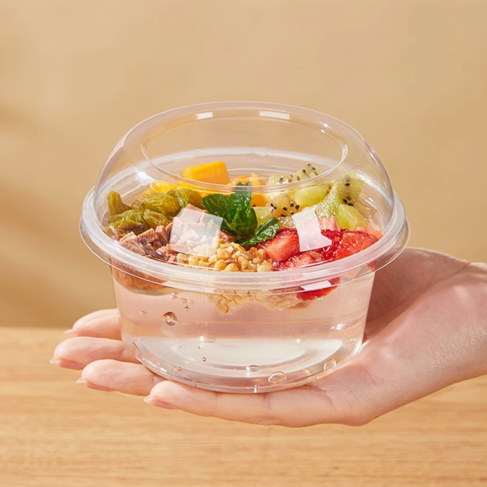 Juego de cuencos para ensaladas, Cuadrado redondo personalizado, PET, plástico transparente, desechables, cuencos para frutas, contenedor, salmón, puré de patatas, atún