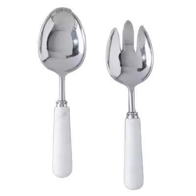 Cuchara y tenedor de diseño brillante Simple para servir ensaladas, aspecto de mármol pulido, mango largo, cuchara de acero inoxidable, juego para servir