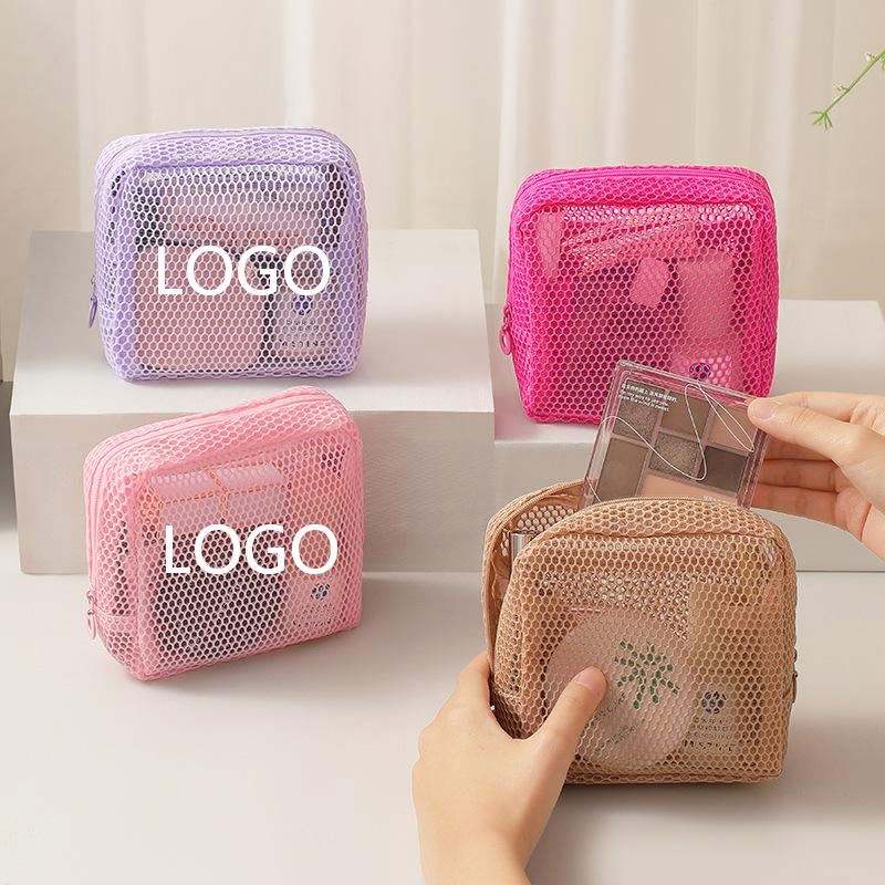 Bolsa de Maquillaje Portátil Mini, Linda y Duradera, con Cierre, para Guardar Lápiz Labial, Monedero Pequeño Cuadrado de Malla, Bolsas Cosméticas