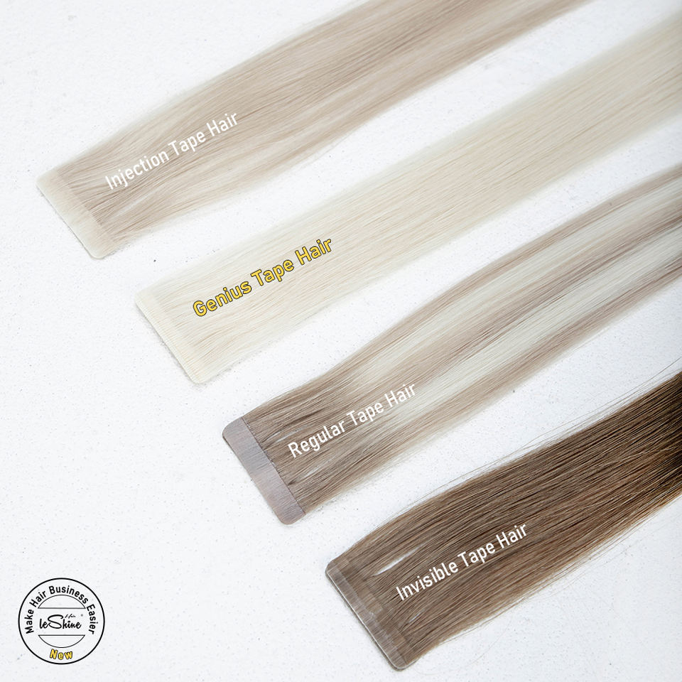 Extensiones de Cabello Virgen con Cinta Adhesiva Genius de Doble Trama para Salón, 100% Cabello Humano Remy con Cutícula Intacta